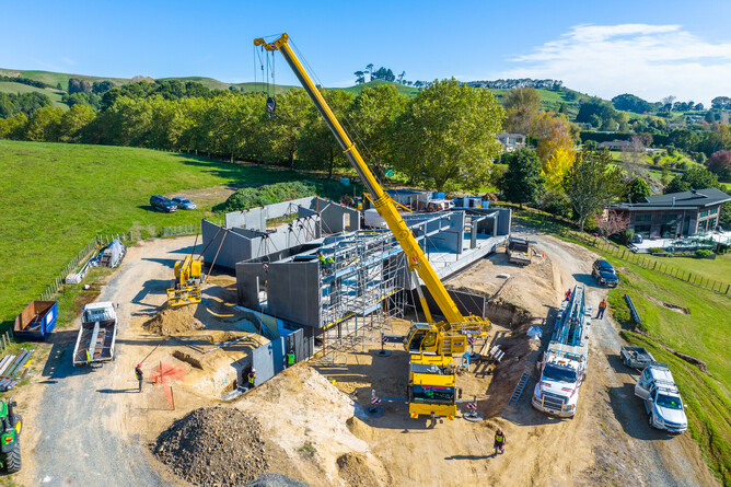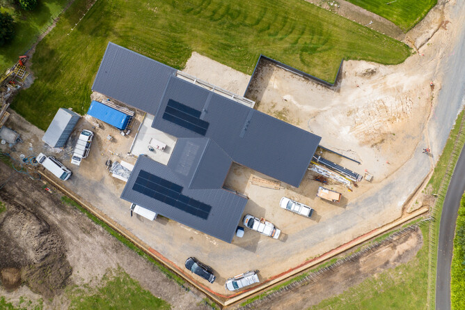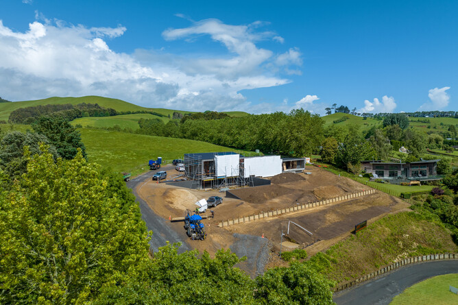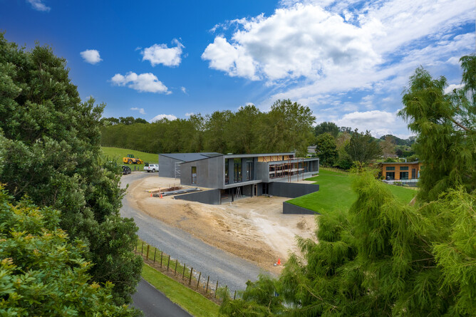 This outstanding new build project has been designed to become a true landmark of the local area. On an elevated site above the picturesque riverbanks of Lake Karapiro, the home is in an enviable spot with stunning water views.