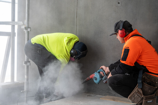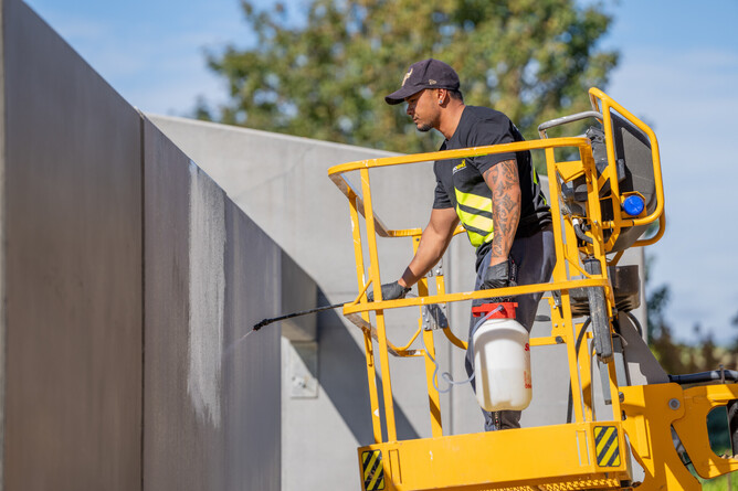 The construction utilises Nahira precast panels, a selection of which feature detailing from the Monarch machine and Peter-Fell concrete colouring.